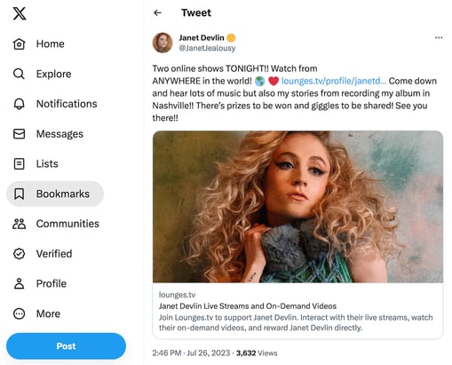 Regular and consistent content on your page will allow you to build up a persistent following and help to keep your audience engaged on your Lounge. If you have previously recorded content, upload it as on-demand videos now and again to keep new and exciting releases on your profile. Regular Live streams also help to boost ticket sales and keep your audience focused on your stream.